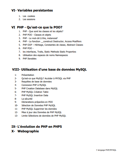 Un fichier PDF contenant toutes les bases du langage PHP, dont -Les fonctionnalités, transmission de variables, variables persistantes (cookies et sessions), les classes, les objects, utilisation de base de données etc..